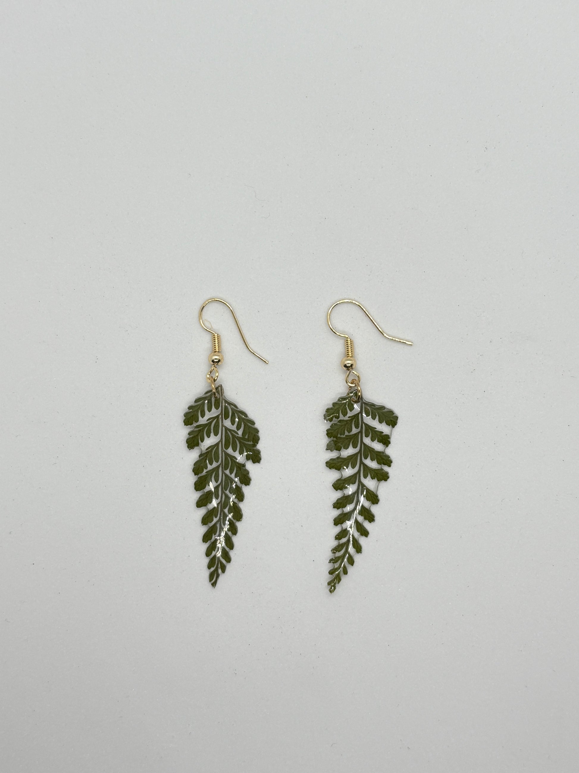 Dried fern turned into delicate earrings on 14k gold filled earring hooks