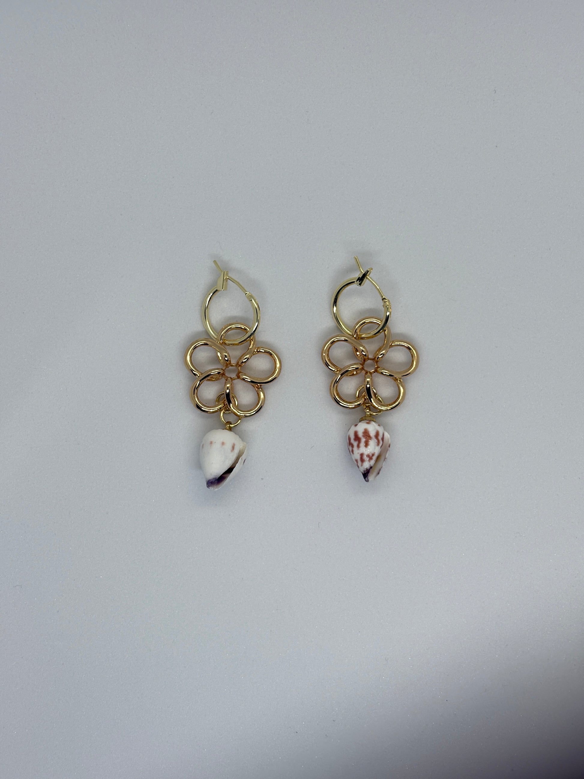 14k gold filled hoops with a tiare x cone shell pendant. I wanted to incorporate the sea x land something subtle yet bold enough to make a statement.